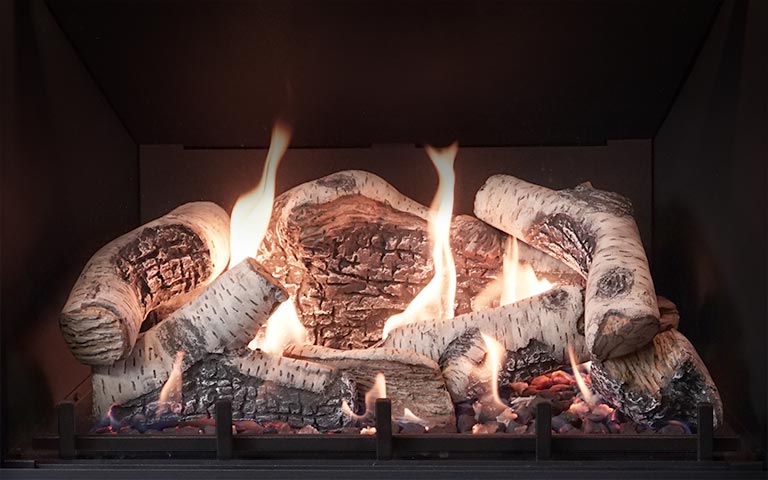 Two dimmable light bulbs are found inside the firebox at the top. They provide a better view of the hand crafted logs and enhance the warm ambiance feeling. The option can be used whether the flame is on or off. Lights are operated with the Ecotel Remote Control.